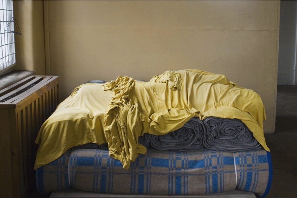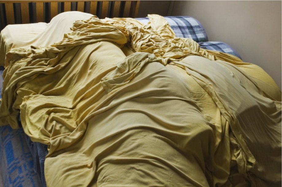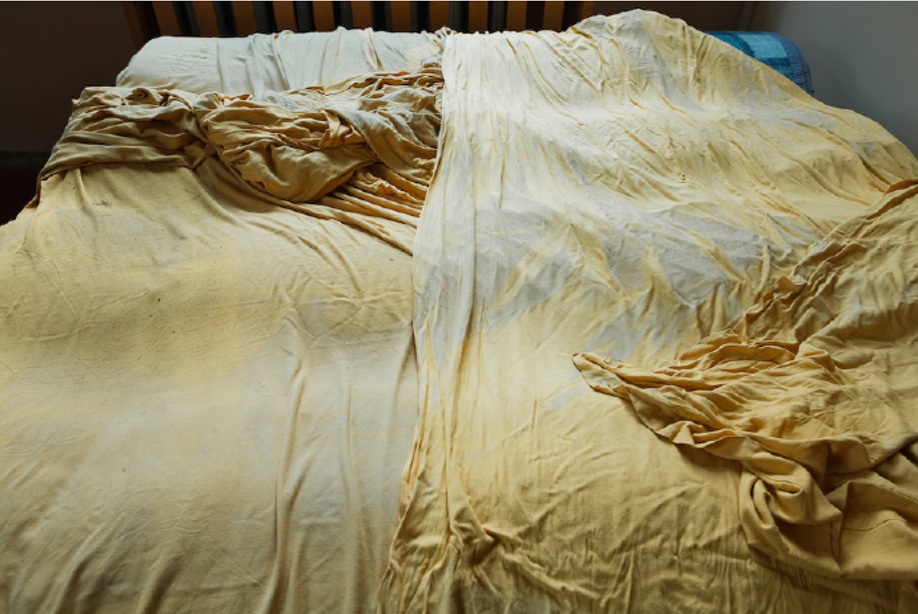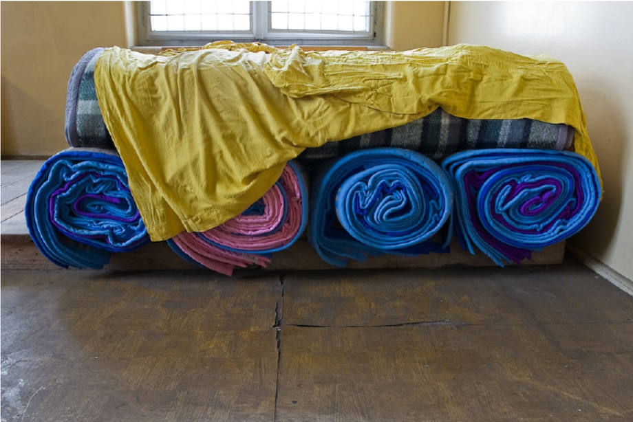 Żółtą szmatę przykrywającą koce znalazłem kilka lat temu w nieczynnym szpitalu, który przerobiono na skaldowsko rzeczy niepotrzebnych – śmieci.