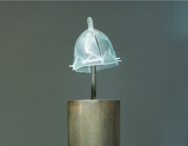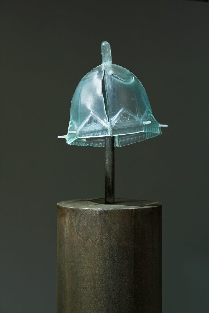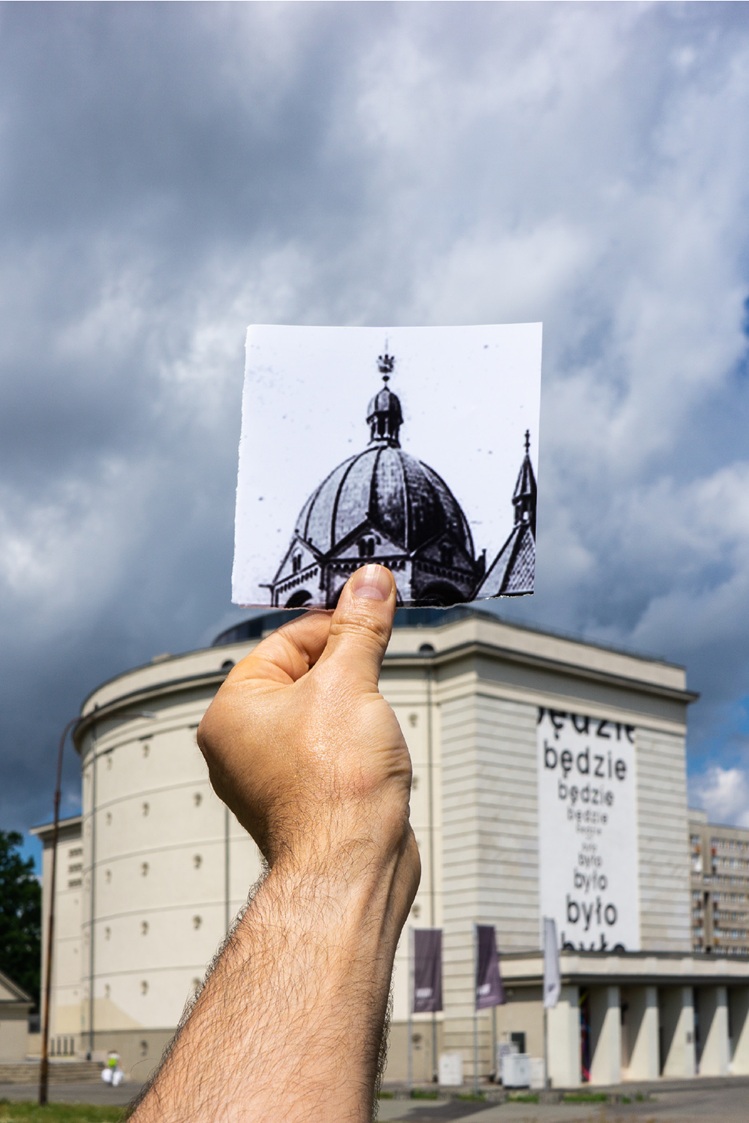 “(…) Tom Swoboda’s work is an architectural model of the dome of the now defunct New Synagogue. Designed by Edwin Oppler and built in the years 1865-1872, the Neo-Gothic-Neo-Romanesque temple of liberal Judaism was the second largest synagogue in Austria and Germany, its dome was 73 meters high. The new synagogue in Breslau was completely burnt down by the Nazis during the Crystal Night of November 9-10, 1938, in the place where it stood at the intersection of Podwale and Łąkowa Streets, today there is only a commemorative monument. The reduced model made of broken glass is an attempt to restore the architecture, reconstructing its form based on archival prints and with reference to the history of the building itself. At the same time, the small size of the sculpture brings to mind home objects such as crystal decorations or architectural miniatures brought as souvenirs from distant places. Swoboda refers the title term Heimat – meaning patrimony – to the concept of a private homeland and its relationship with faith, asking questions about the way of building the identity of societies in the face of the erected, ruined and forgotten architecture.”